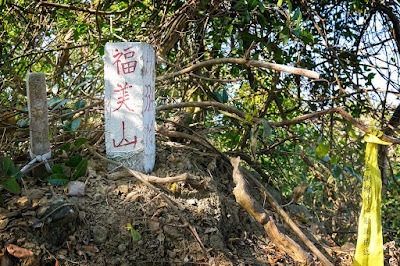 - 過巨岩後 就是「潑猴坡」聽名字即知不好惹 繩索攀爬 手腳並用吧, 上了山頂就是「福美山」了 過了福美山的標示, 又是一段下坡後 及抵 「悍將坡」光聽名字就以腿軟